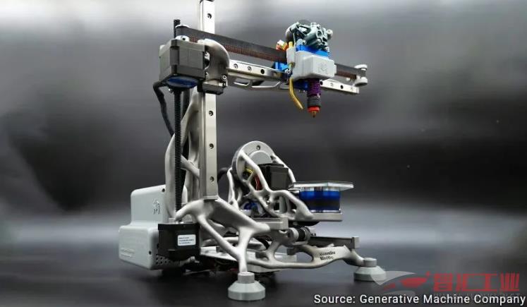這臺新型生成式設(shè)計桌面設(shè)備,延續(xù)經(jīng)典的懸臂結(jié)構(gòu)設(shè)計,采用直線導(dǎo)軌與通用組件,但突破性地運用生成式設(shè)計的金屬3D打印鋁制框架,賦予設(shè)備獨具一格的流線型有機外觀。